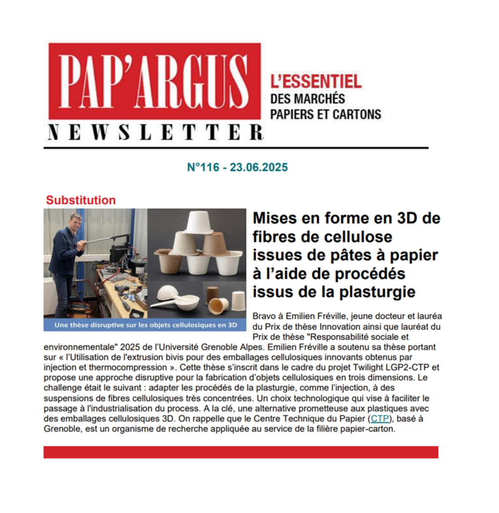 Mises en forme en 3D de fibres de cellulose issues de pâtes à papier à l'aide de procédés issus de la plasturgie.