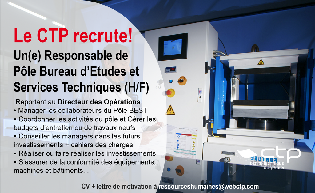 Les informations recueillies à partir de ce formulaire sont nécessaires à l'instruction de votre demande. Elles sont enregistrées et transmises aux services du Centre Technique du Papier en charge de son traitement. Vous disposez d'un droit d'accès, de modification et d'opposition aux données qui vous concernent. Pour l'exercer, adressez-vous au : Centre Technique du Papier - Domaine Universitaire - CS 90251 - 38044 GRENOBLE - FRANCE