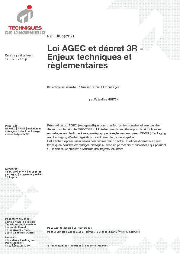 Source : Technique de L'ingénieur | Génie industriel, Emballages